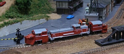 冬はラッセルヘッド(写真で機関車の前後についている除雪機)が取り付けられて除雪用になります。(夏は取り外されて通常のディーゼル機関車として使用さ