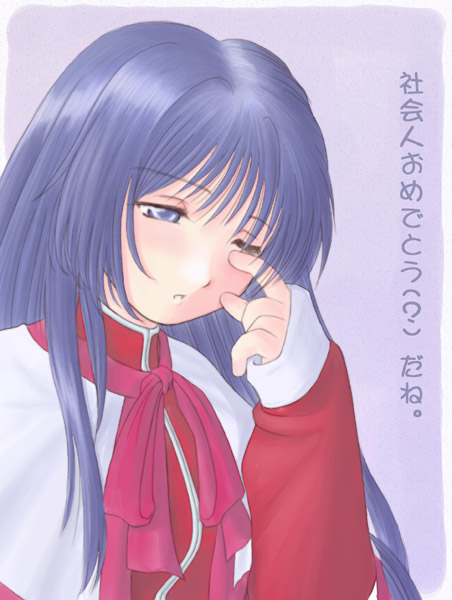 「社会人記念にKanonの絵を描けい」と、 いちお君から謎のリクエストを受けて描くことになりました。 Kanonの名雪です。 名雪と言うより「ナデシコ」のユリカのようですな。 書き分けなんぞ出来ようはずもなし。とほほ。