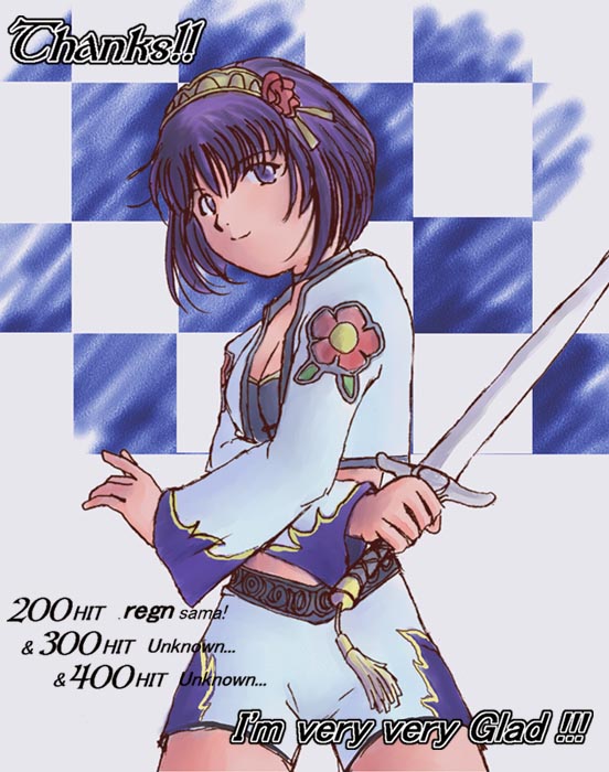 らいんさんのリクエストで描きました。 BG処理がもうホンマにわからなくて この頃は色んなCG作家さんのHPに 研究の旅に出てました その成果がこれかい!って感じですが、 まぁ楽しそうだから良いでしょう。 ちなみにキャリバーの女性キャラでは ソン・ミナが一番好きです。