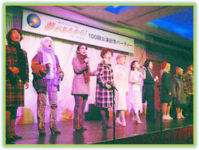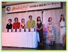 1999年5月30日に開幕しました『夢があるから!』は、お蔭様で2006年2月7日に公演100回目を迎えることが出来、現在138回を数えております。 そして先日、11月5日(日)に感謝の思いを込め、青学会館にて開催いたしました“『夢があるから!』100回公演記念パーティーin東京”が、皆様のあたたかい拍手に包まれて大盛況のうちに終えることが出来ました!!
