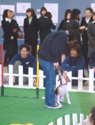 これからアジリティに挑むんです。 緊張してるのがわかるでしょう… いつもと全然違う場所なんだもん。 まずは、ハードルは無事にクリア。 緊張のあまり柵越えして、 Cちゃんに迷惑掛けちゃいました! |