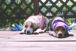 ↑ 暑いので、タオルをかぶるハークさん ↓ 甘えん坊のなな君 |