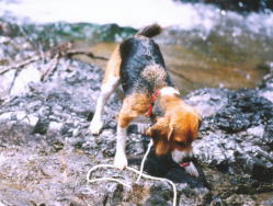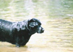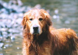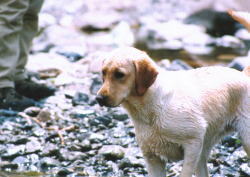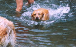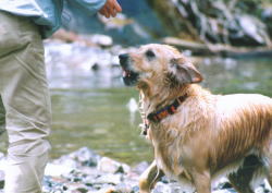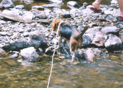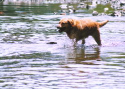 何度も川へ入れられてうんざり気味のはな。 |