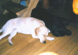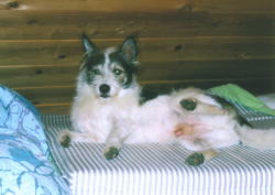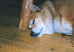 コンクリートの叩きで日向ぼっこはなちゃん。 |