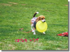ハナちゃんはフリスビーがとっても得意なのだ! はなも挑戦したけど、とりあえず拾ってくるだけ… しかし、見込みアリかな?? |