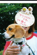 はなちゃんは サラママのひざの上… サラママの顔はナイショ!! |