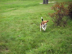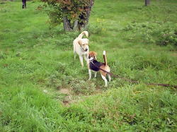 | 清里の森で、本当に楽しそうです。 はなは、パターゴルフを楽しんでいた子のボールにちょっかい出しちゃいました。 |