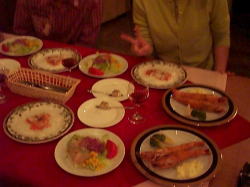 | 上 ヒッコリーファームで頂いた鉄板焼き 下 メリー&ナイスの夕食これに ビーフシチューが付きました。 |