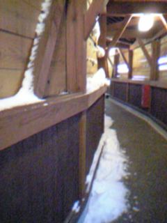 寒気と風で廊下を囲む板塀の隙間から雪が吹き込んで積もっているのだおそるべし人外魔境……