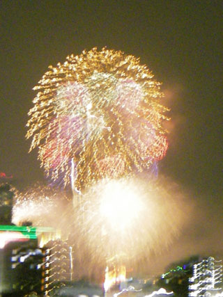 ほぼ2時間に及ぶなかなか規模の大きなこの花火大会、バルコニーに出ることなくエアコンの効いたリビングから楽々鑑賞出来る嬉しい代物。
