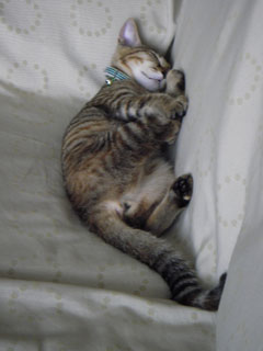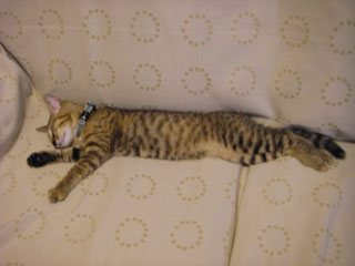 同じくなんともいえない足の位置につい笑って撮った、居待。ちなみに居待はこの後またびろーんと伸びた。