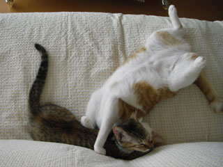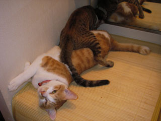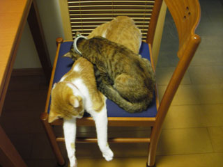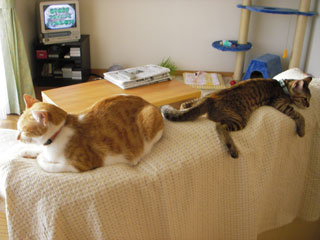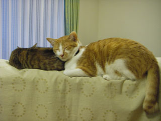 尻尾が枕。立待は微妙にイヤそう(笑)。