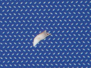 ソファカバーに何か落ちているので剥がした爪(猫の爪は脱皮するように外からぺりぺり剥けて新しいのに替わる)かと思ってよく見たら牙だったのだ。