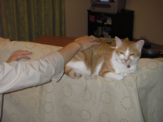 背中も腹も撫で放題、肉球もひげもしっぽも耳も好きにさわり放題だ。