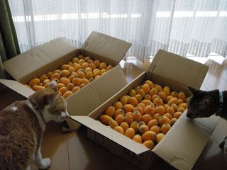 前の会社の時は出社時刻が遅く、また通勤時間も短かめだったので箱ひとつ持参していたのだが、今の会社は始業時刻も世間並みで通勤電車も混んでいるので、去年はさすがに職場には持って行けなかった。 ちなみに、産地の農協からの直送品で、『商品』に出来ないちょっと傷があったり形がふぞろいだったりするものを格安で伯母が分けてもらっているものなので、見た目は多少悪くても味は抜群。