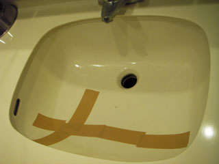 応急処置。交換工事中に撮らせてもらったので水栓がもうない(笑)。