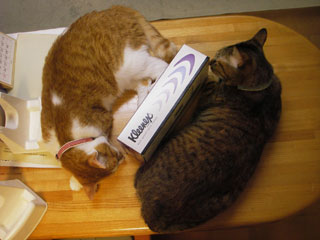 ちなみにこのティッシュボックス、立待の足に少し乗っているのだが、まるで気にせず眠っている。