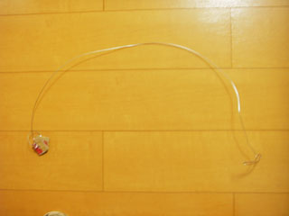 針金を1mちょっと切り、片方の先をペンチで曲げて小さな輪を作る。そこにキーホルダーを取り付け、さらにそのキーホルダーに段ボールの切れっ端を3枚刺す。針金のもう片方の先は持ちやすいように10cmほどの幅を3度折り曲げ、これでひとまず完成。曲げた針金の先が危険そうならプラスチックで覆いをしようかと思っていたが、大丈夫そうなので結局使わず。