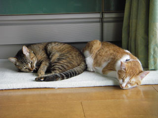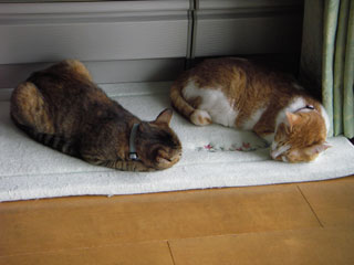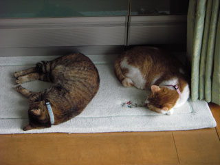 気温が上がって来たせいか、猫たちの寝姿が面白くてしかたないのだ。