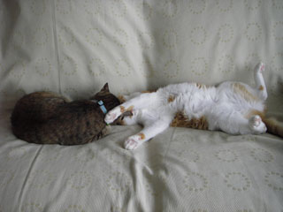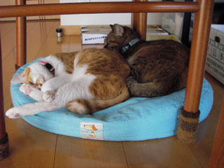 2006. 9. 8.8月に夏休みの残り1日を取り損ねたので、上司に「8と11と15とで、夏休み取るならどこが一番いいですか」と相談の上、夏休み最終日は8日に決定。(ウチの職場は『夏休み』3日を各自好きに申告して取得) 猫もまったり。
