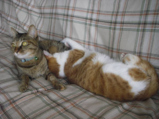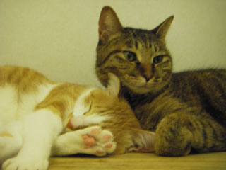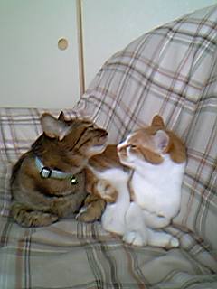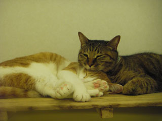 2007. 1. 7.約2週間ぶりに立待を病院へ連れて行く。 それにしてもダイエットを言い渡されて体重を減らす努力をしている猫と飼い主さんも多いと言うのに増やす方で悩むとは(苦笑)。 家主の心配もそっちのけで猫たちは相変わらず。