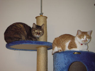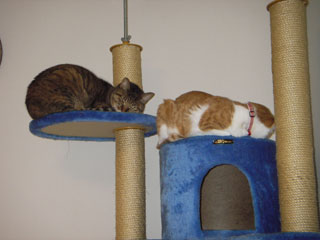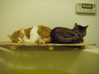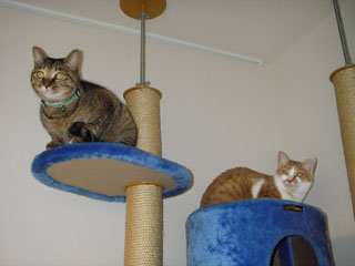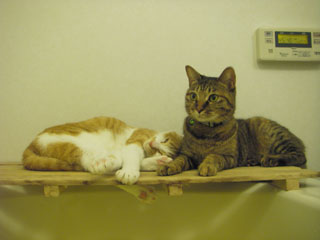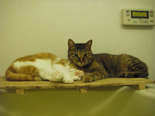 2007. 1. 14.ほぼ週刊『ウチの猫』。 まずはキャットタワーの天辺で。 続いて久々の簀の子猫。