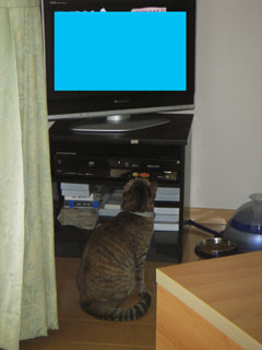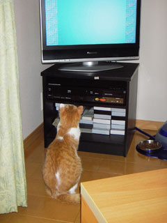 朝、某ニュース番組の休日スペシャル投稿ビデオ大賞を見ていたら、どうやら猫達が興味を持ったらしい。