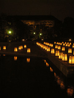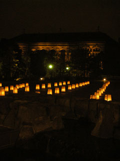 到着して国立博物館に入ってみたら、案外と灯篭の数も少なくてちょっと拍子抜けではあったのだけれど、手前の池の水に灯篭の明かりが映ったりもして、それなりに綺麗であった。