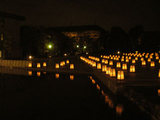 これは、薬師寺の玄奘三蔵会大祭で行われる万燈会を、多数の置灯篭で再現したもの。