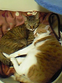 2009. 1. 1 あけました。2009年の年明け。 その後、猫達は気疲れでもしていたのか、ずっと2猫揃って↓こんな感じで猫ベッドでご就寝。