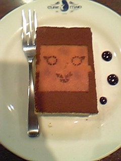 で、並んで待つこと約1時間。メイドさんに席に案内されて、いそいそとフェイスケーキとホットミルクを注文する。他の飲み物もあるのだが、ホットミルクかホットココアを注文するとセブンのキャラクターを描いたマグカップで出て来て、会計時に新しいマグカップを1個もらえるのだ。