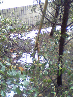 都心からは外れたウチのあたりでも夜中のみぞれから明け方には雪になってたようで、午前10時を過ぎても屋根の上や日影にはうっすら雪が残っていた。