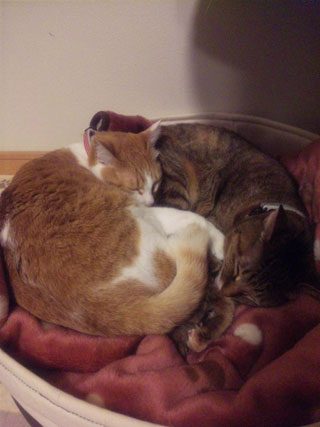 2011. 1. 2 その2お二方が帰宅なさった後、それまで押し入れに隠っていた居待がやっと出て来て、あっという間にこの有り様。