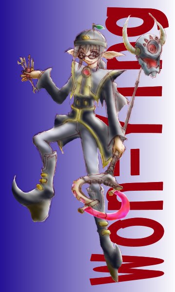 Won=Ying殿を描いたイラストです。 れいな殿曰く「フォースの服を練習していたらウォンになった」 うーん。なんだかスゴイコメントですけど…(^^;) 「Wonさんだからいでしょう。」 …まぁ、描いてくれるってうれしいことですけどねっ。(^^) ちゃんとツール(工具)持ってますよ〜。