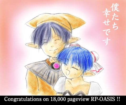 とみぃ・びぎ殿から頂いた1万8千ページビューの 記念CGです。中途半端な数字ですが。(^^;) ともあれ、ありがとうございました 描かれているのは凪殿とエンジェル殿ですね。 らぶらぶなのはいいことですが、 周りを置いてきぼりにしないでねーっ?